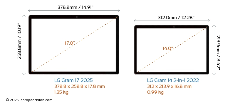 Wifi Gram 17 2025 dispose d'une norme Wi-Fi plus avancée v7, offrant des connexions sans fil plus rapides et fiables par rapport à Gram 14 2-in-1 2022 (v6E).