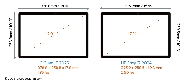 HDMILes deux Gram 17 2025 et Envy 17 2024 disposent d'un port HDMI (1x HDMI 2.1) pour se connecter à des moniteurs externes.