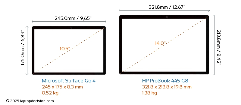 HDMIProBook 445 G8 dispose d'un port HDMI (1x HDMI 1.4) pour se connecter à des moniteurs externes. Surface Go 4 n'a pas de port HDMI.