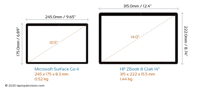 HDMI ZBook 8 G1ak 14" dispose d'un port HDMI (1x HDMI 2.1) pour se connecter à des moniteurs externes. Surface Go 4 n'a pas de port HDMI.