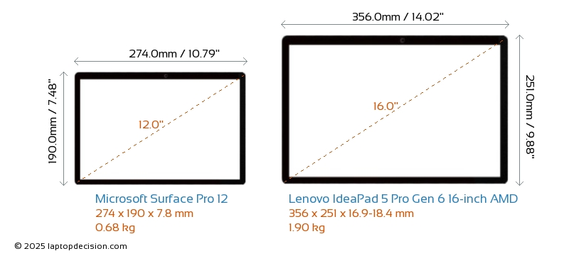 HDMIIdeaPad 5 Pro Gen 6 16-inch AMD dispose d'un port HDMI (1x HDMI 1.4) pour se connecter à des moniteurs externes. Surface Pro 12 n'a pas de port HDMI.