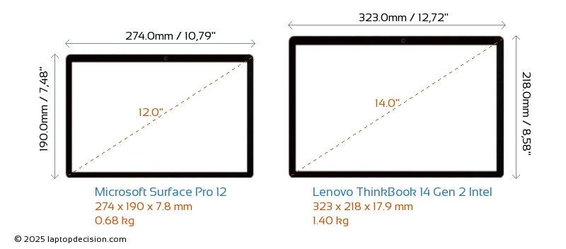 ThunderboltThinkBook 14 Gen 2 Intel est équipé d'un port Thunderbolt 4. Surface Pro 12 n'a pas de port Thunderbolt.