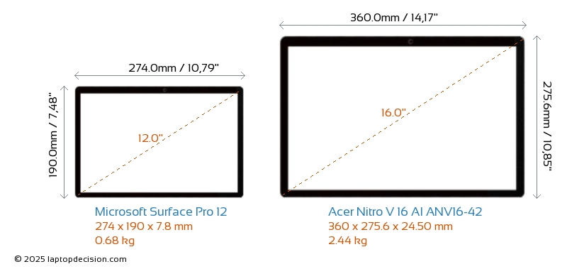 HDMI Nitro V 16 AI ANV16-42 dispose d'un port HDMI (1x HDMI 2.1) pour se connecter à des moniteurs externes. Surface Pro 12 n'a pas de port HDMI.