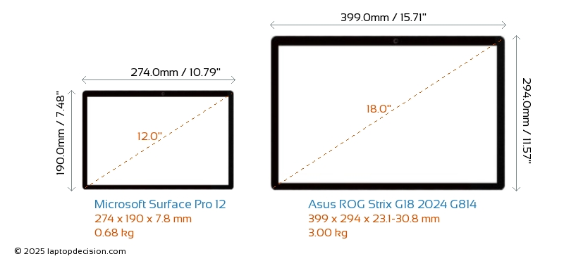 HDMI ROG Strix G18 2024 G814 dispose d'un port HDMI (1x HDMI 2.1) pour se connecter à des moniteurs externes. Surface Pro 12 n'a pas de port HDMI.