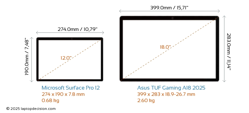ThunderboltAucun des deux Surface Pro 12 ni TUF Gaming A18 2025 n'a de port Thunderbolt.