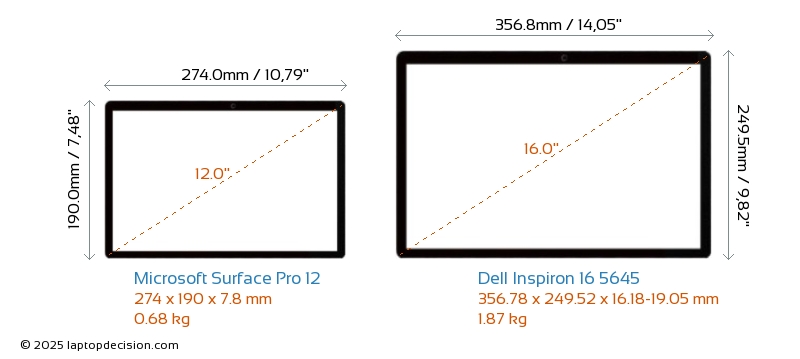 HDMI Inspiron 16 5645 dispose d'un port HDMI (1x HDMI 1.4) pour se connecter à des moniteurs externes. Surface Pro 12 n'a pas de port HDMI.