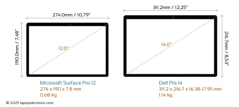 USB Pro 14 est équipé de 1x USB 3.2 ports USB-A. Surface Pro 12 n'a pas de ports USB-A.Les deux Surface Pro 12 et Pro 14 disposent de 2x USB 4.0 ports USB Type-C.