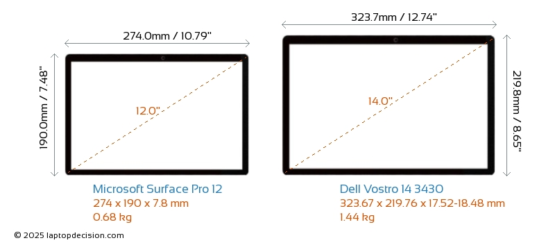 HDMI Vostro 14 3430 dispose d'un port HDMI (1x HDMI 1.4) pour se connecter à des moniteurs externes. Surface Pro 12 n'a pas de port HDMI.