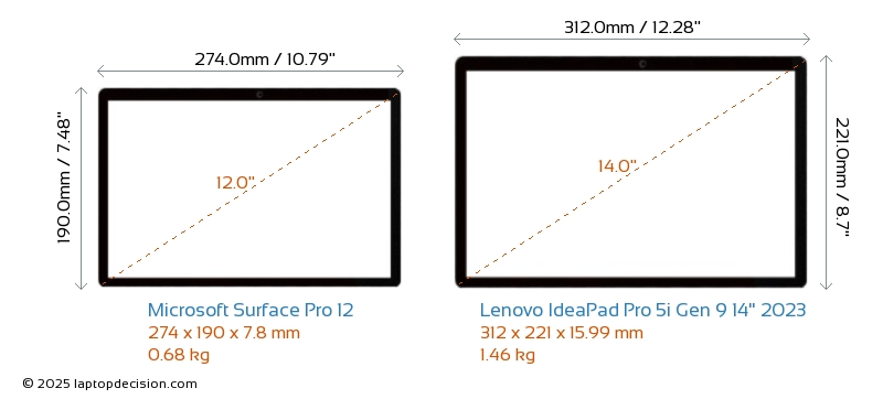 HDMI IdeaPad Pro 5i Gen 9 14" 2023 dispose d'un port HDMI (1x HDMI 2.1) pour se connecter à des moniteurs externes. Surface Pro 12 n'a pas de port HDMI.