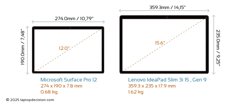 HDMI IdeaPad Slim 3i 15 , Gen 9 dispose d'un port HDMI (1x HDMI 1.4) pour se connecter à des moniteurs externes. Surface Pro 12 n'a pas de port HDMI.