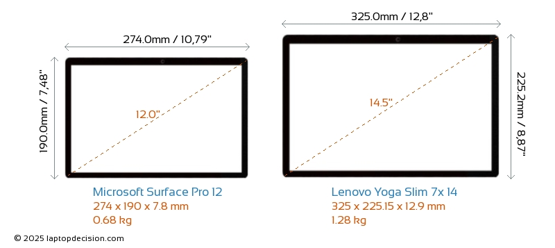 HDMINeither Surface Pro 12 nor Yoga Slim 7x 14 has an HDMI port for connecting to external monitors. Aucun des deux Surface Pro 12 ni Yoga Slim 7x 14 n'a de port HDMI pour se connecter à des moniteurs externes.