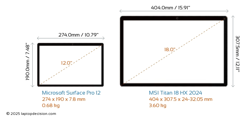 HDMI Titan 18 HX 2024 dispose d'un port HDMI (1x HDMI 2.1) pour se connecter à des moniteurs externes. Surface Pro 12 n'a pas de port HDMI.