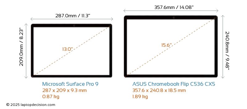 Thunderbolt Surface Pro 9 est équipé d'un port Thunderbolt 4. Chromebook Flip C536 CX5 n'a pas de port Thunderbolt.