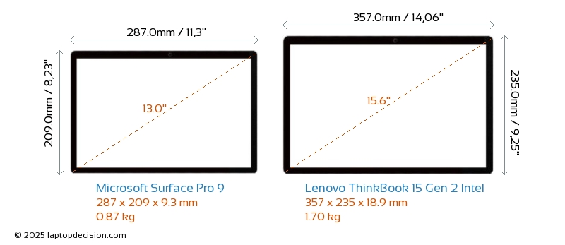 HDMIThinkBook 15 Gen 2 Intel dispose d'un port HDMI (1x HDMI 1.4) pour se connecter à des moniteurs externes. Surface Pro 9 n'a pas de port HDMI.