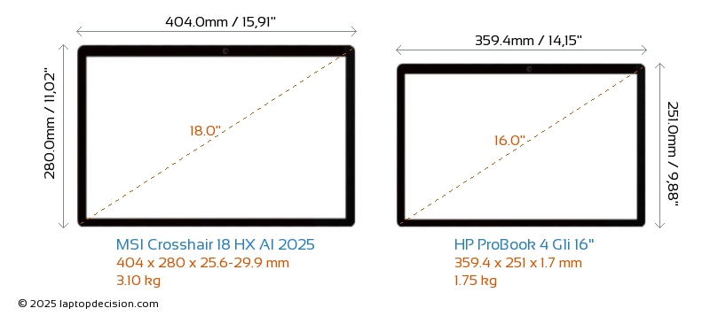 HDMILes deux Crosshair 18 HX AI 2025 et ProBook 4 G1i 16" disposent d'un port HDMI (1x HDMI 2.1) pour se connecter à des moniteurs externes.