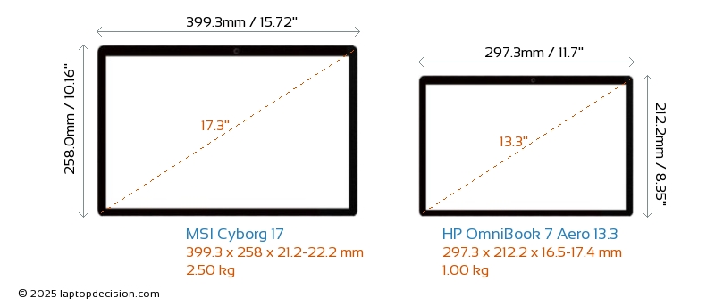 HDMILes deux Cyborg 17 et OmniBook 7 Aero 13.3 disposent d'un port HDMI (1x HDMI 2.1) pour se connecter à des moniteurs externes.