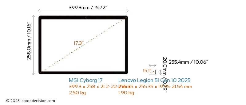 Lecteur de carte SDAucun des deux Cyborg 17 ni Legion 5i Gen 10 2025 n'a de lecteur de cartes SD.
