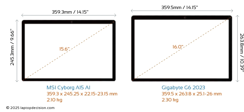 USBLes deux Cyborg A15 AI et G6 2023 disposent de 2x USB 3.2 ports USB-A.Les deux Cyborg A15 AI et G6 2023 disposent de ports USB Type-C. Cyborg A15 AI dispose de 1x USB 3.2 ports USB Type-C, tandis que G6 2023 en dispose de 2x USB 3.2.