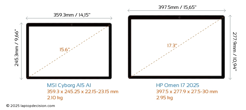 HDMILes deux Cyborg A15 AI et Omen 17 2025 disposent d'un port HDMI (1x HDMI 2.1) pour se connecter à des moniteurs externes.