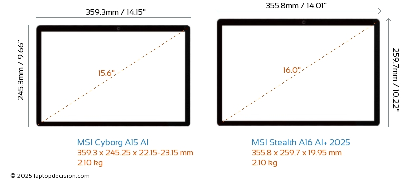 USBLes deux Cyborg A15 AI et Stealth A16 AI+ 2025 disposent de 2x USB 3.2 ports USB-A.Les deux Cyborg A15 AI et Stealth A16 AI+ 2025 disposent de ports USB Type-C. Cyborg A15 AI dispose de 1x USB 3.2 ports USB Type-C, tandis que Stealth A16 AI+ 2025 en dispose de 1x USB 4.0.