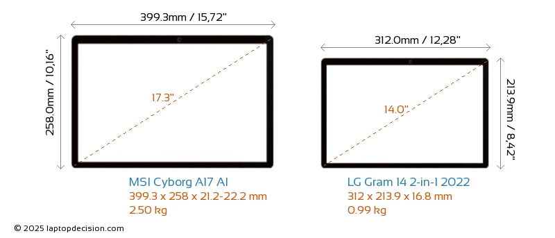 HDMILes deux Cyborg A17 AI et Gram 14 2-in-1 2022 disposent d'un port HDMI. Cyborg A17 AI offre 1x HDMI 2.1, tandis que Gram 14 2-in-1 2022 offre 1x HDMI 2.0.