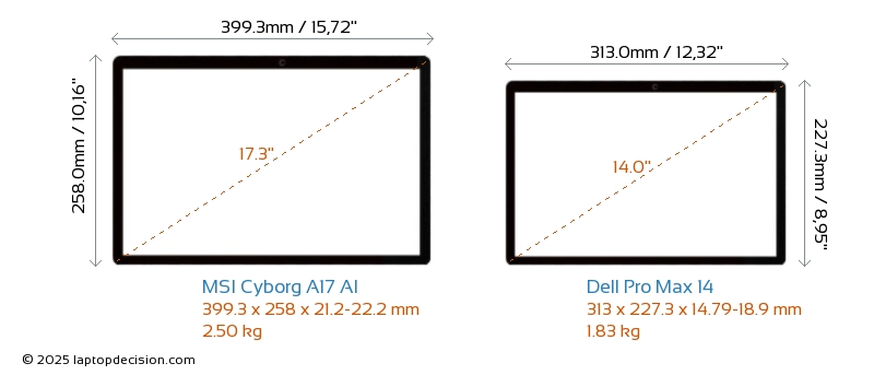 USBLes deux Cyborg A17 AI et Pro Max 14 disposent de 2x USB 3.2 ports USB-A.Les deux Cyborg A17 AI et Pro Max 14 disposent de ports USB Type-C. Cyborg A17 AI dispose de 1x USB 3.2 ports USB Type-C, tandis que Pro Max 14 en dispose de 2x USB 4.0.