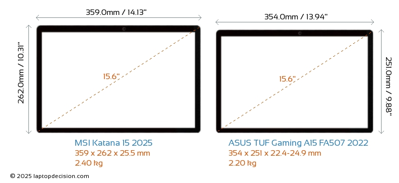 Wifi Katana 15 2025 dispose d'une norme Wi-Fi plus avancée v6E, offrant des connexions sans fil plus rapides et fiables par rapport à TUF Gaming A15 FA507 2022 (v6).