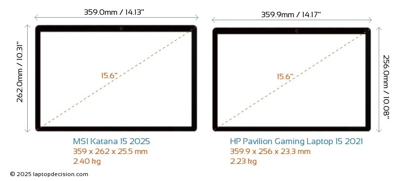Prise AudioLes deux Katana 15 2025 et Pavilion Gaming Laptop 15 2021 sont équipés d'une prise audio de 3,5 mm, permettant une connexion sans interruption aux écouteurs et haut-parleurs.