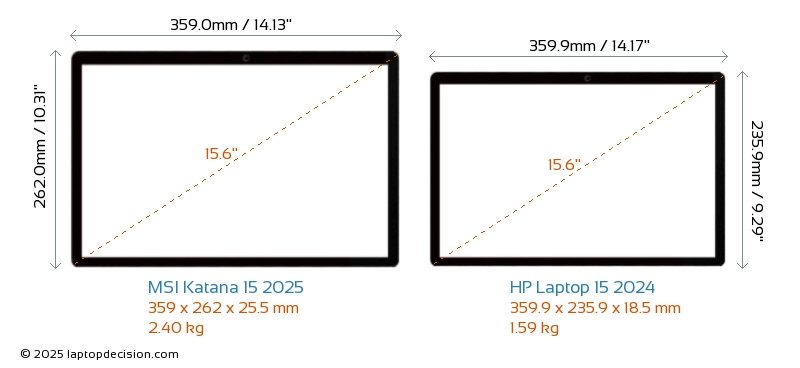 HDMILes deux Katana 15 2025 et Laptop 15 2024 disposent d'un port HDMI. Katana 15 2025 offre 1x HDMI 2.1, tandis que Laptop 15 2024 offre 1x HDMI 1.4.
