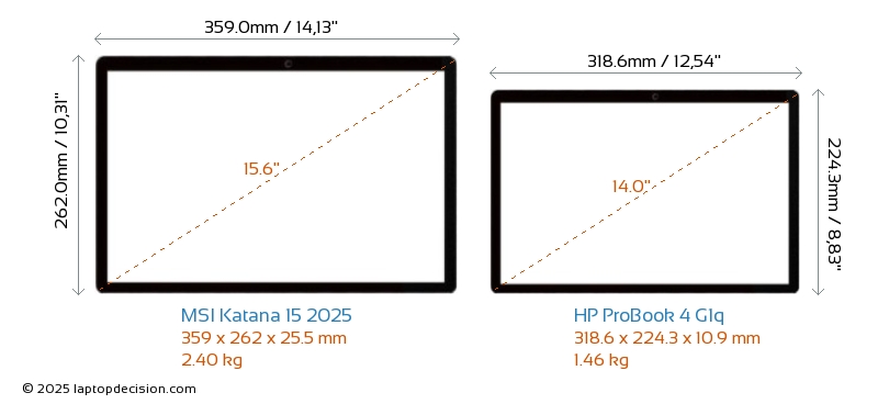 HDMILes deux Katana 15 2025 et ProBook 4 G1q disposent d'un port HDMI (1x HDMI 2.1) pour se connecter à des moniteurs externes.