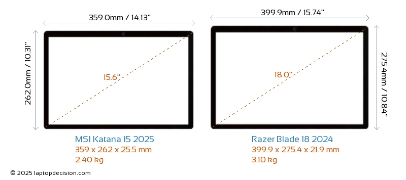 USBLes deux Katana 15 2025 et Blade 18 2024 disposent de 3x USB 3.2 ports USB-A.Les deux Katana 15 2025 et Blade 18 2024 disposent de ports USB Type-C. Katana 15 2025 dispose de 1x USB 3.2 ports USB Type-C, tandis que Blade 18 2024 en dispose de 2x USB 4.0.
