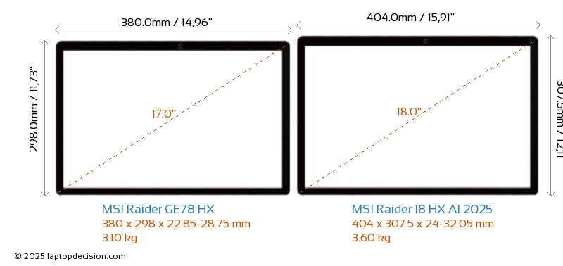 USBLes deux Raider GE78 HX et Raider 18 HX AI 2025 disposent de ports USB-A. Raider GE78 HX dispose de 2x USB 3.2 ports USB-A, tandis que Raider 18 HX AI 2025 en dispose de 3x USB 3.2.Les deux Raider GE78 HX et Raider 18 HX AI 2025 disposent de ports USB Type-C. Raider GE78 HX dispose de 3x USB 4.0 ports USB Type-C, tandis que Raider 18 HX AI 2025 en dispose de 2x USB 4.0.