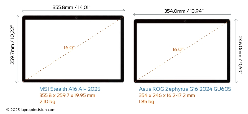 ThunderboltLes deux Stealth A16 AI+ 2025 et ROG Zephyrus G16 2024 GU605 sont équipés de Thunderbolt 4 ports.