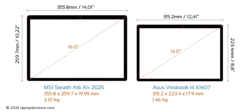 Lecteur de carte SDAucun des deux Stealth A16 AI+ 2025 ni Vivobook 14 X1407 n'a de lecteur de cartes SD.