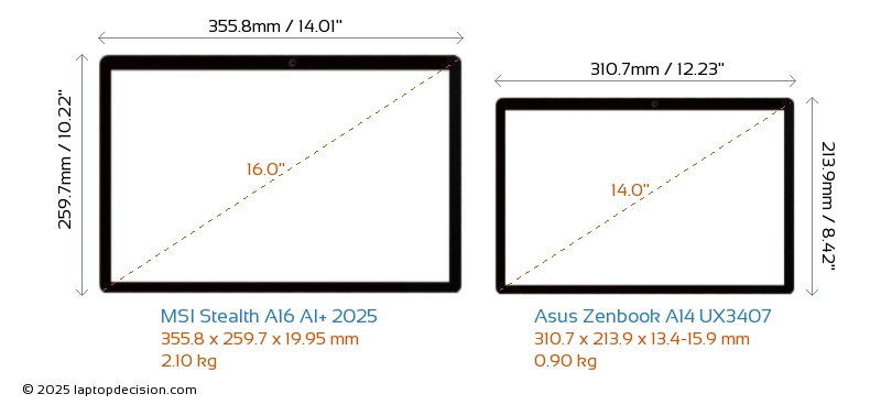 HDMILes deux Stealth A16 AI+ 2025 et Zenbook A14 UX3407 disposent d'un port HDMI (1x HDMI 2.1) pour se connecter à des moniteurs externes.
