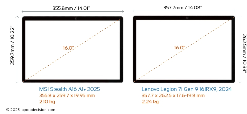 ThunderboltLes deux Stealth A16 AI+ 2025 et Legion 7i Gen 9 16IRX9, 2024 sont équipés de Thunderbolt 4 ports.