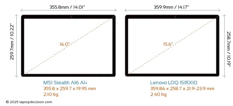 HDMILes deux Stealth A16 AI+ et LOQ 15IRX10 disposent d'un port HDMI (1x HDMI 2.1) pour se connecter à des moniteurs externes.