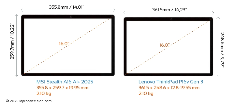 ThunderboltLes deux Stealth A16 AI+ 2025 et ThinkPad P16v Gen 3 sont équipés de Thunderbolt 4 ports.