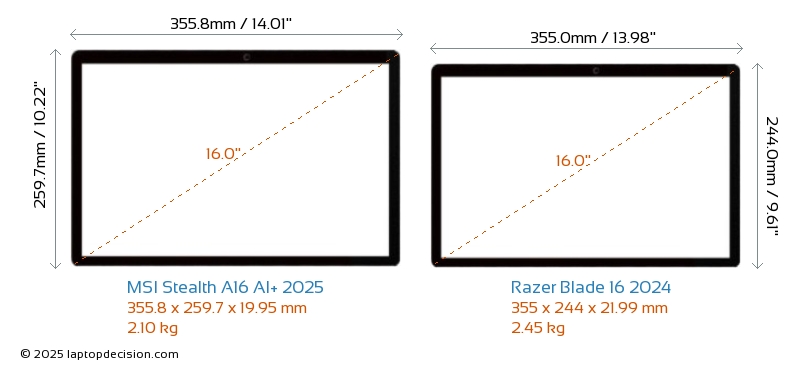 HDMILes deux Stealth A16 AI+ 2025 et Blade 16 2024 disposent d'un port HDMI (1x HDMI 2.1) pour se connecter à des moniteurs externes.