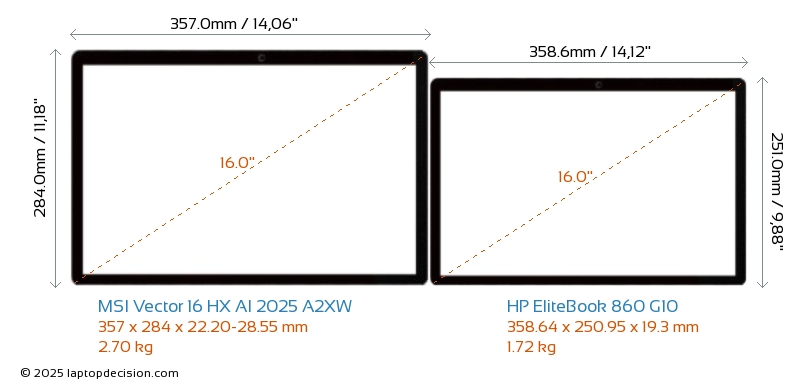 HDMILes deux Vector 16 HX AI 2025 A2XW et EliteBook 860 G10 disposent d'un port HDMI (1x HDMI 2.1) pour se connecter à des moniteurs externes.