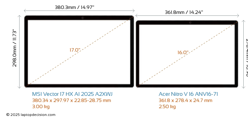 Wifi Vector 17 HX AI 2025 A2XWJ dispose d'une norme Wi-Fi plus avancée v7, offrant des connexions sans fil plus rapides et fiables par rapport à Nitro V 16 ANV16-71 (v6).