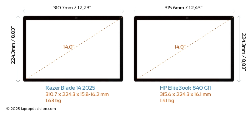 HDMILes deux Blade 14 2025 et EliteBook 840 G11 disposent d'un port HDMI (1x HDMI 2.1) pour se connecter à des moniteurs externes.