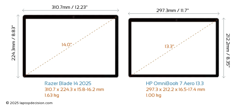HDMILes deux Blade 14 2025 et OmniBook 7 Aero 13.3 disposent d'un port HDMI (1x HDMI 2.1) pour se connecter à des moniteurs externes.