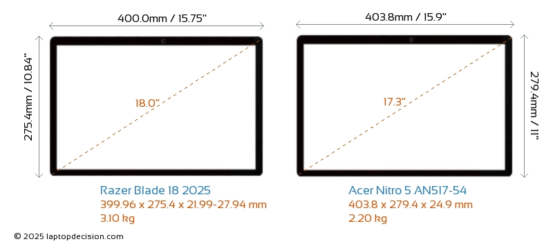 Prise AudioLes deux Blade 18 2025 et Nitro 5 AN517-54 sont équipés d'une prise audio de 3,5 mm, permettant une connexion sans interruption aux écouteurs et haut-parleurs.