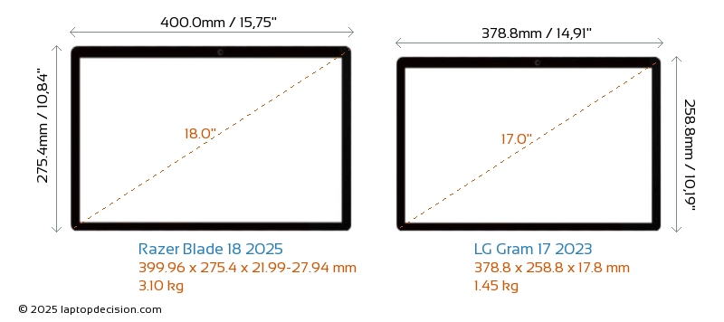 Prise AudioLes deux Blade 18 2025 et Gram 17 2023 sont équipés d'une prise audio de 3,5 mm, permettant une connexion sans interruption aux écouteurs et haut-parleurs.