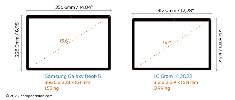 USBLes deux Galaxy Book 5 et Gram 14 2022 disposent de 2x USB 3.2 ports USB-A.Les deux Galaxy Book 5 et Gram 14 2022 disposent de 2x USB 4.0 ports USB Type-C.