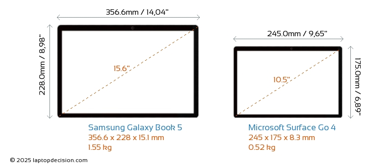 Prise AudioLes deux Galaxy Book 5 et Surface Go 4 sont équipés d'une prise audio de 3,5 mm, permettant une connexion sans interruption aux écouteurs et haut-parleurs.
