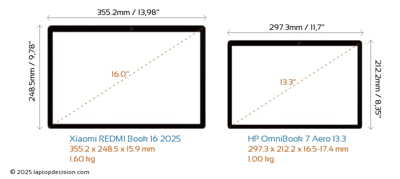 Prise AudioLes deux REDMI Book 16 2025 et OmniBook 7 Aero 13.3 sont équipés d'une prise audio de 3,5 mm, permettant une connexion sans interruption aux écouteurs et haut-parleurs.