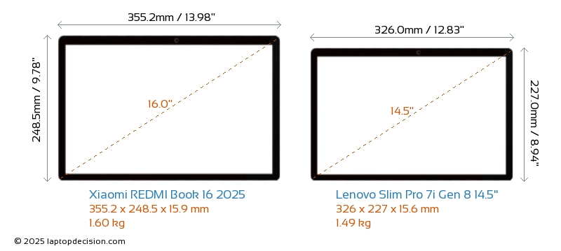 Wifi Slim Pro 7i Gen 8 14.5" dispose d'une norme Wi-Fi plus avancée v6E, offrant des connexions sans fil plus rapides et fiables par rapport à REDMI Book 16 2025 (v6).