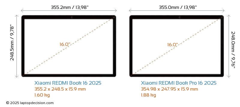 Thunderbolt REDMI Book Pro 16 2025 est équipé d'un port Thunderbolt 4. REDMI Book 16 2025 n'a pas de port Thunderbolt.